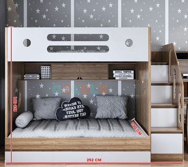 Lời khuyên: Trước khi đặt mua, bạn nên đo chính xác chiều cao trần nhà. Để thoải mái nhất, khoảng cách từ tầng 2 đến trần nên đạt tối thiểu 70cm.